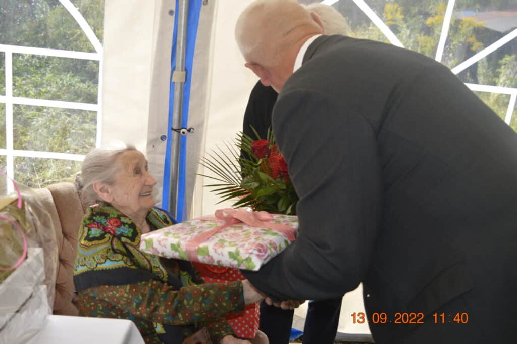 Setna rocznica urodzin była okazją do wspomnień najważniejszych wydarzeń w życiu Jubilatki, która dożyła pięknych lat, pomimo swojego wieku cieszy się życiem, jest pogodna, przyjazna i życzliwa dla ludzi.
