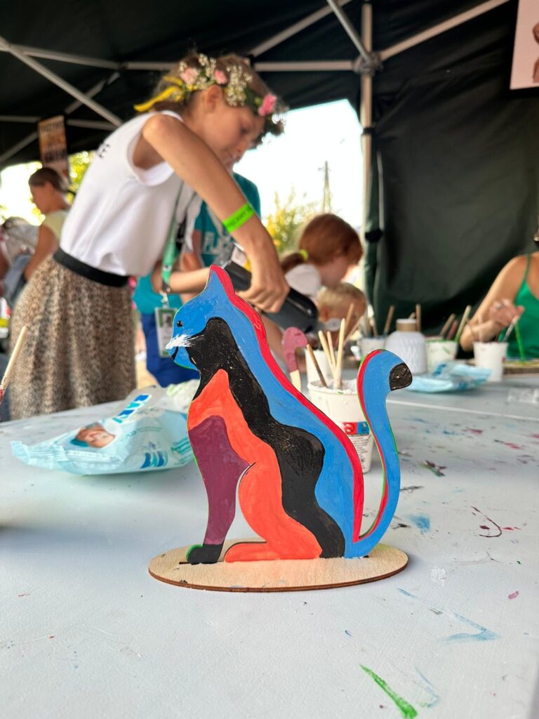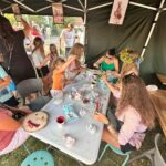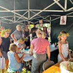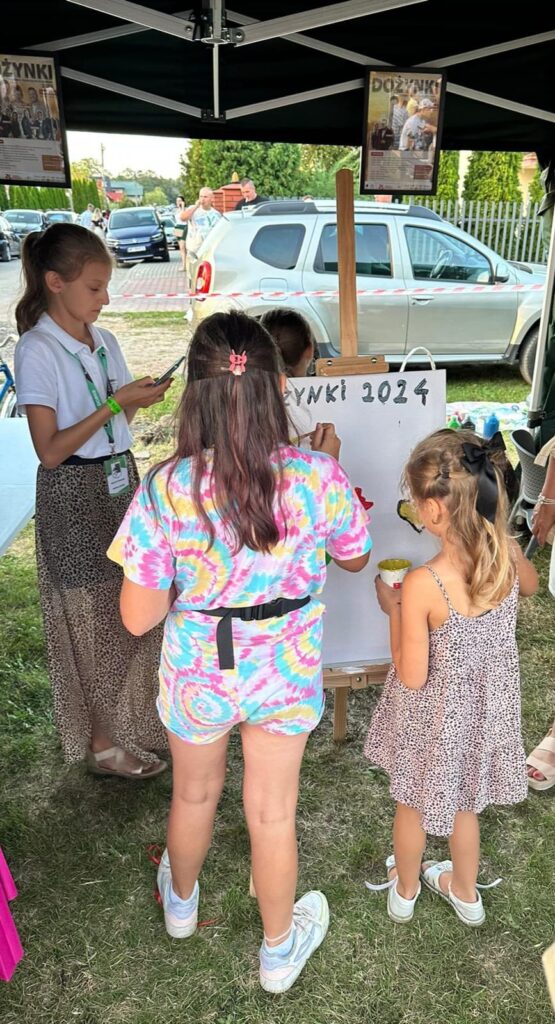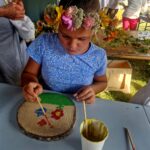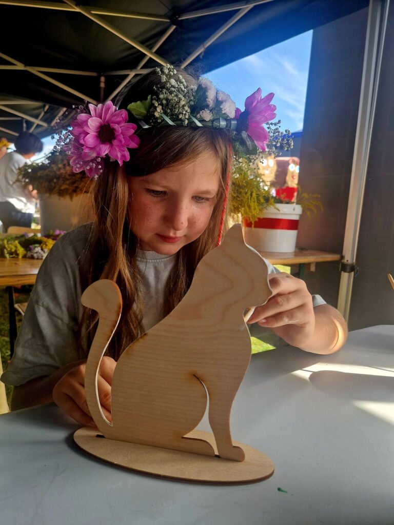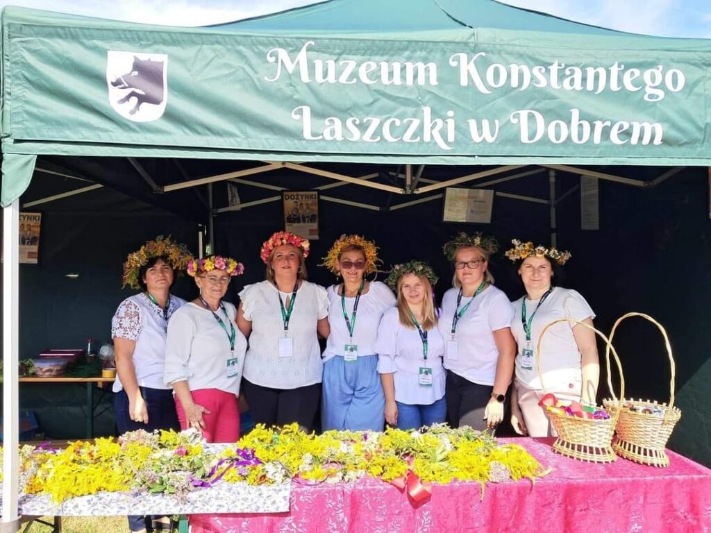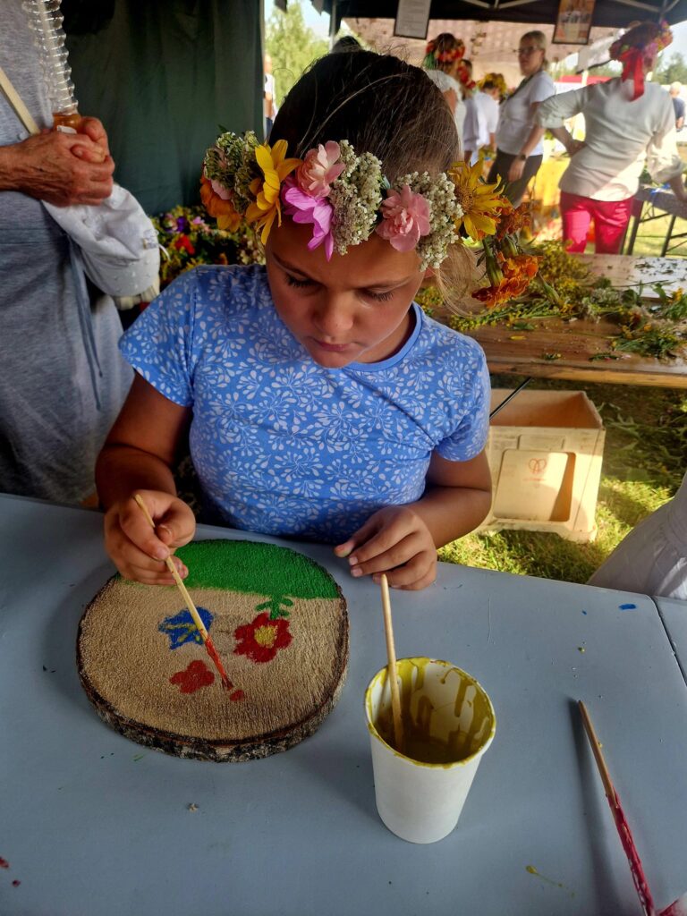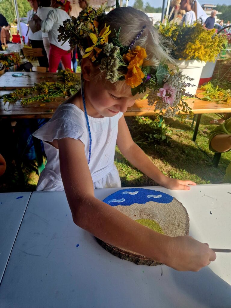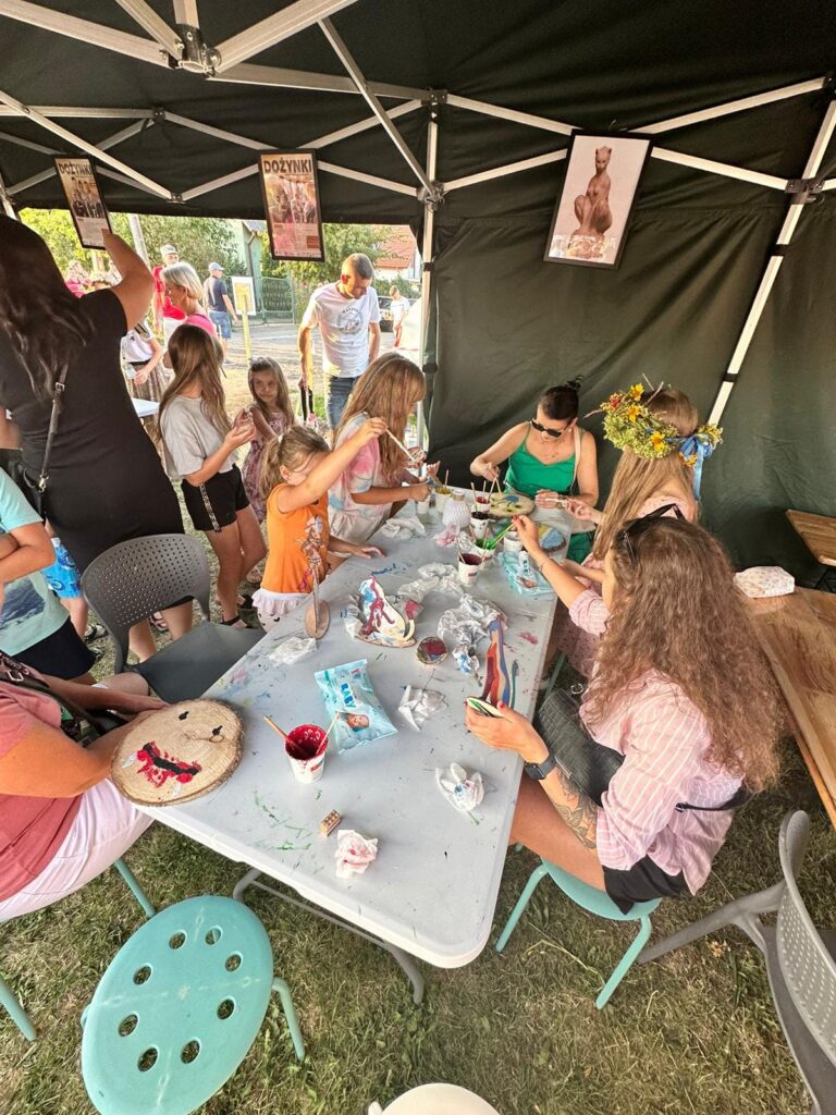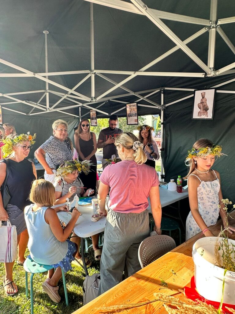 W namiocie promocyjnym Gminy Dobre pracownicy UMiG oraz GMINNEGO Żłobka ,,Małe Zuchy” przygotowali m.in. wicie wianków , malowanie na drewnie, projektowanie przypinek .