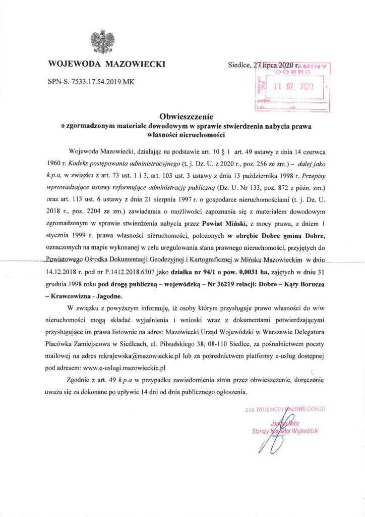 Wójt Gminy Dobre informuje, że w wyniku awarii nastąpiła przerwa w dostawie wody w Dobrem na ulicach Kilińskiego, Sienkiewicza, Moniuszki, Reymonta, Mickiewicza, Kopernika i Dobrzynieckiego. Przewidywany termin usunięcia awarii: 11 sierpnia godzina 16:00