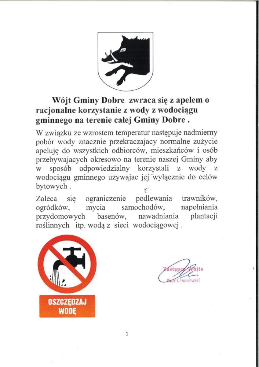 w dostawie wody dla odbiorców z ulic Kościuszki i Polnej w Dobrem.