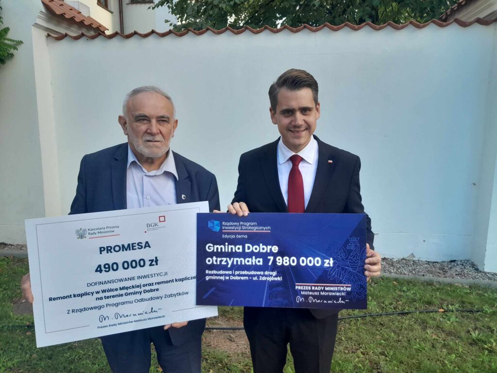 – 7 980 000,00 zł na inwestycję dotyczącą rozbudowy i przebudowy ul. Zdrojówki w miejscowości Dobre, środki pieniężne pozyskano z Rządowego programu Inwestycji Strategicznych
