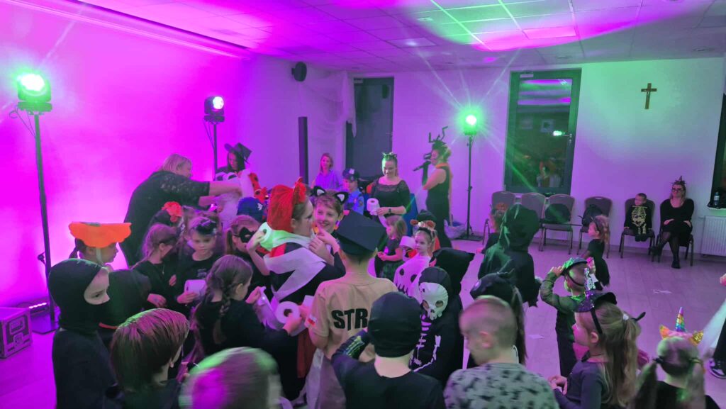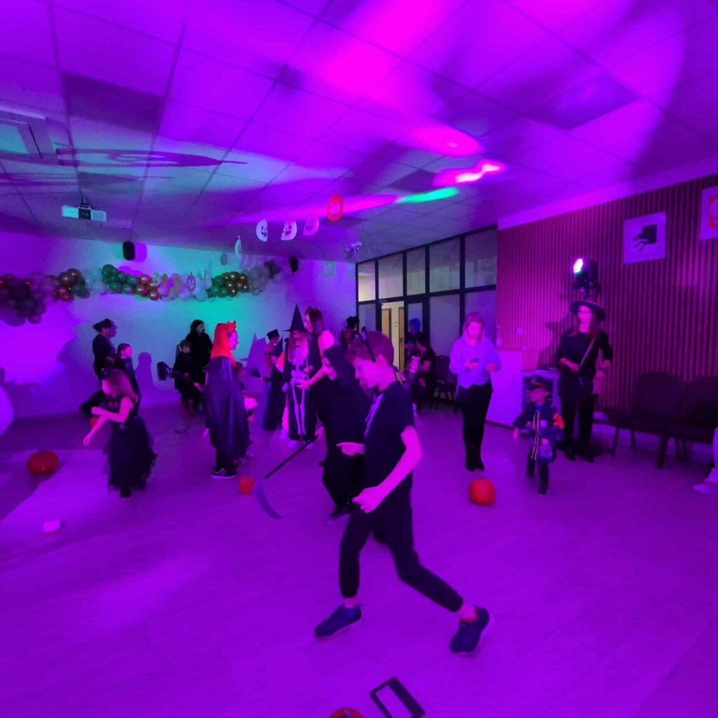 Dzieci oraz rodzice przyszli w pięknych, pomysłowych przebraniach – wśród nich nie zabrakło uroczych dyniek, czarownic i zabawnych potworków. W programie znalazły się wspólne zabawy, konkursy oraz tańce. Dużym zainteresowaniem cieszyło się również malowanie buziek, które pozwoliło dzieciom wcielić się w różne postacie i podkreślić charakter święta.