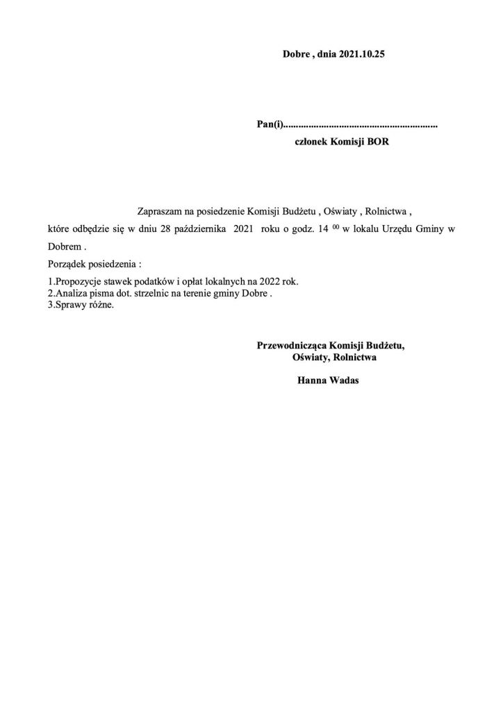 Informuję, że w dniu 12 listopada 2021 roku Urząd Gminy Dobre będzie nieczynny. ( Zgodnie z Ustawą – Kodeks Pracy jest to dzień wolny za święto przypadające w sobotę 25 grudnia 2021 r.)