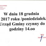 Praca Urzędu w dniu 18 grudnia 2017 roku