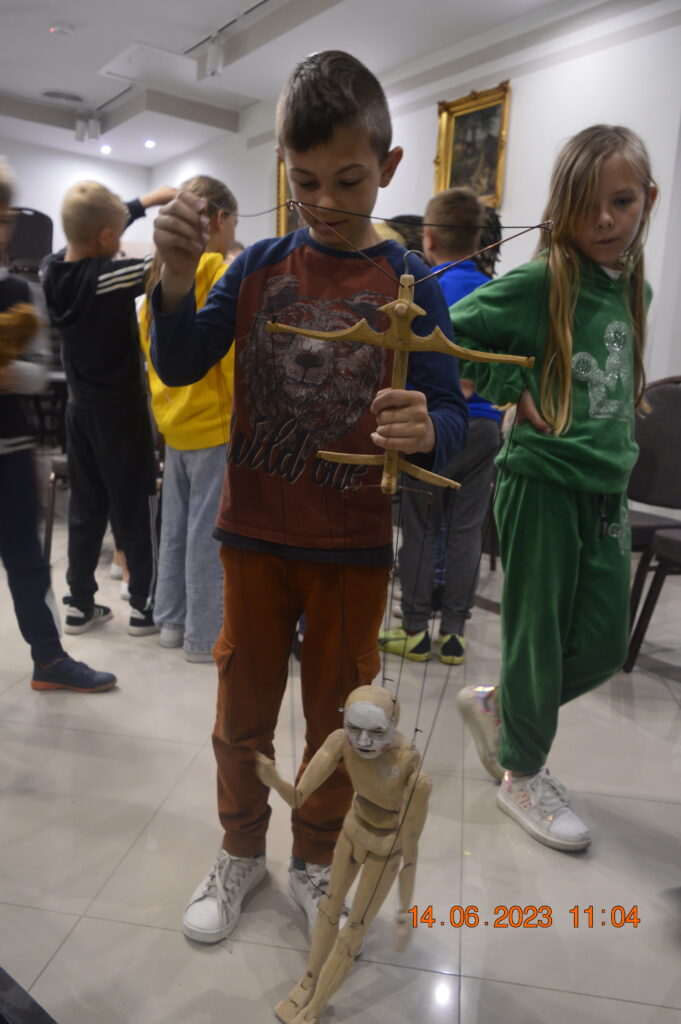 Czy sztuka łamie zasady? Co łączy piłkarza i aktora? Co to jest stand-up? Odpowiedzi na te i wiele innych pytań szukali uczniowie kl. 2a z Zespołu Szkolno – Przedszkolnego w Dobrem podczas warsztatów „Marionetki w Muzeum Konstantego Laszczki”.