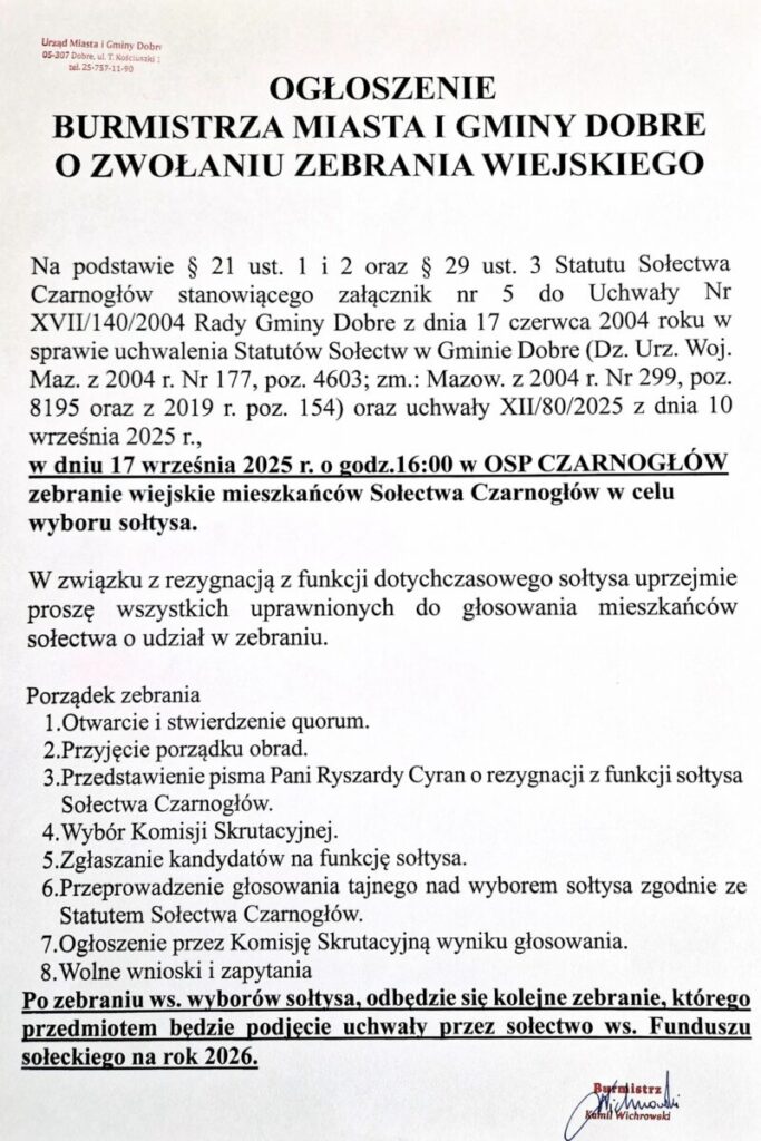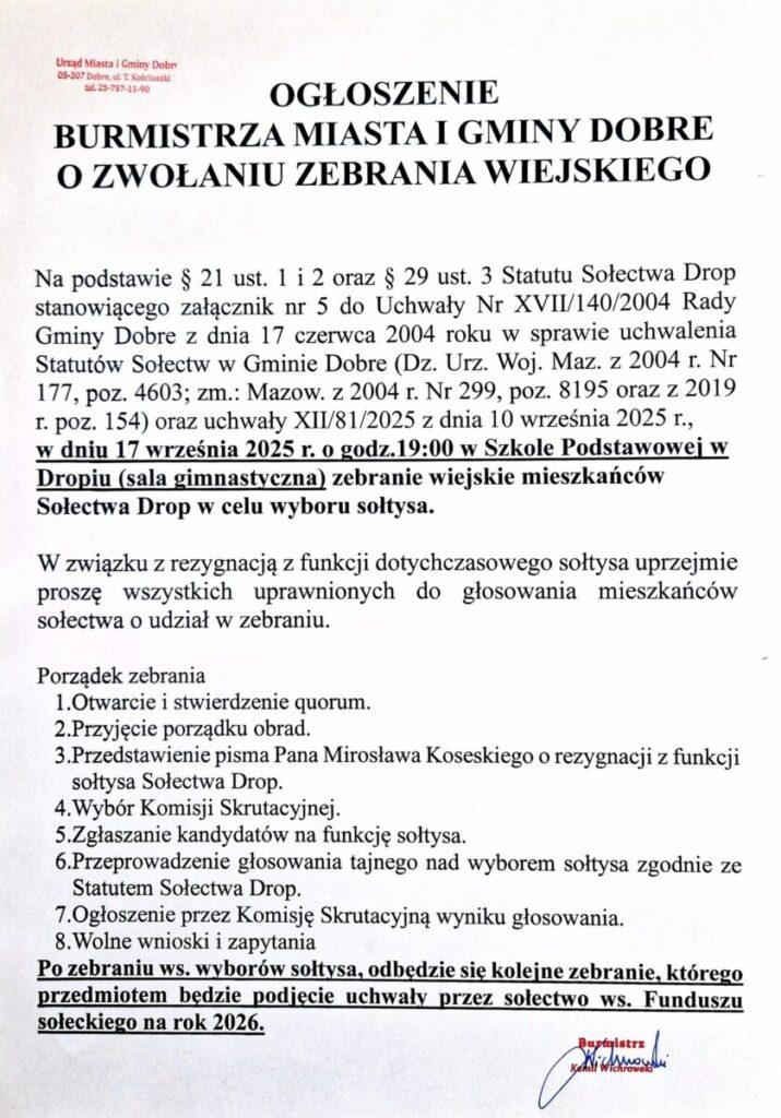Ogłoszenie Burmistrza Miasta i Gminy Dobre