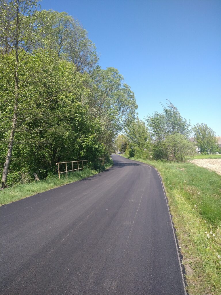 Asfaltowa droga z Lewej strony drzewa.
