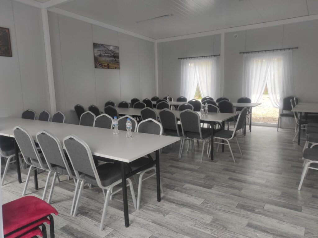 Zakupiono meble zabudowy kuchennej, stoły bankietowe, krzesła oraz sprzęt AGD: zmywarkę, kuchnię gazowo – elektryczną, okap i chłodziarkę.