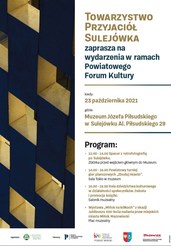 20 października 2021r. w Muzeum Józefa Piłsudskiego w Sulejówku rozpoczęto VIII Powiatowe Forum Kultury. W wydarzeniu wziął udział Wójt Gminy Dobre Tadeusz Gałązka, Przewodniczący Rady Gminy Waldemar Szymański. Podczas konferencji przedstawiono historię powstania Muzeum Józefa Piłsudskiego w Sulejówku, następnie odbył się panel dyskusyjny dotyczący współpracy między muzeami. VIII Powiatowe Forum Kultury potrwa do piątku. Szczegóły na plakatach.