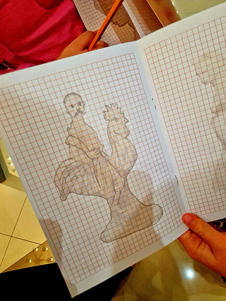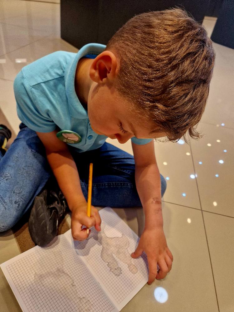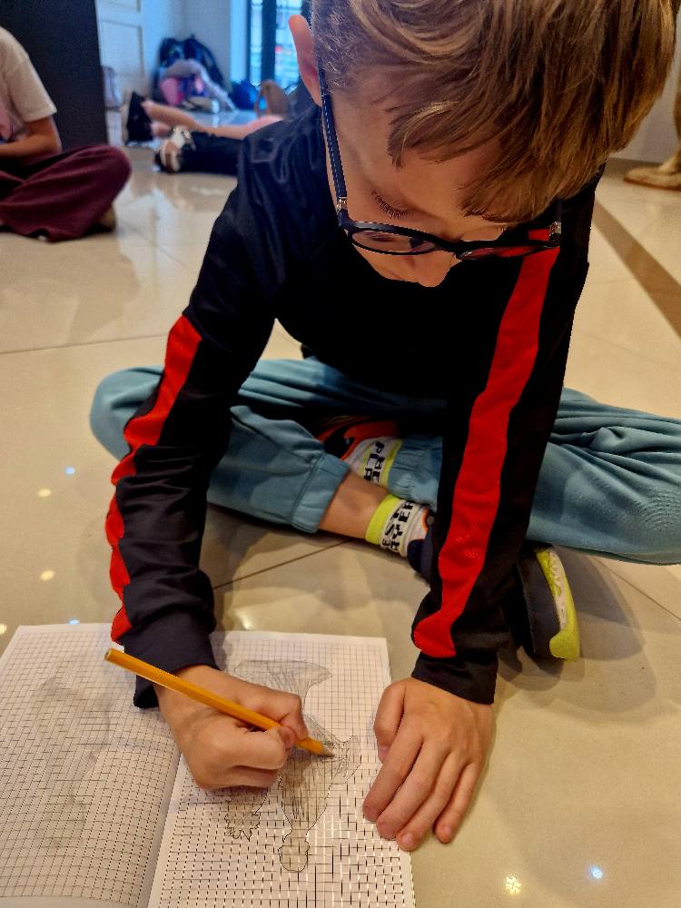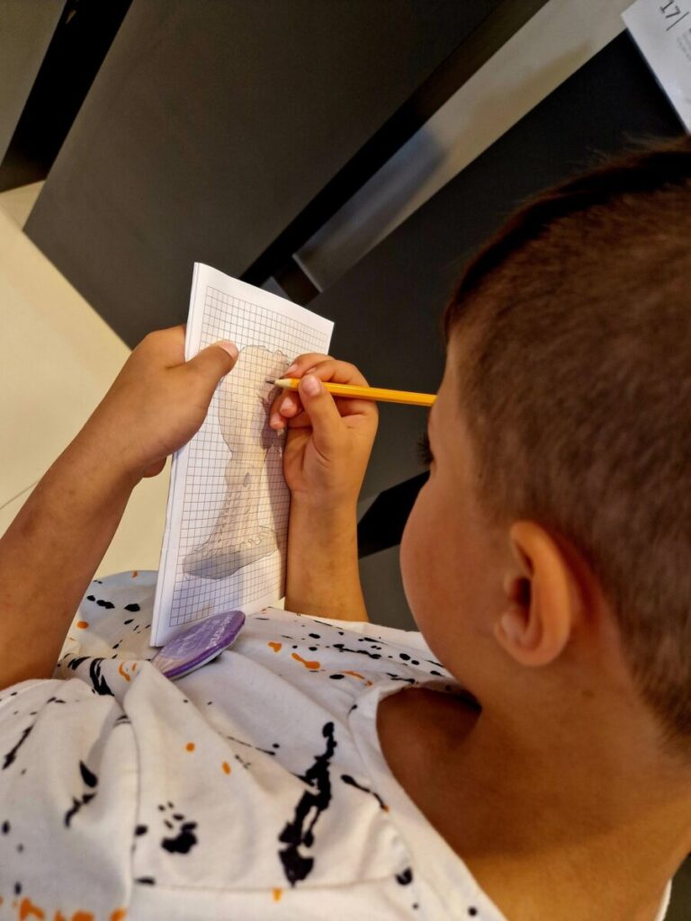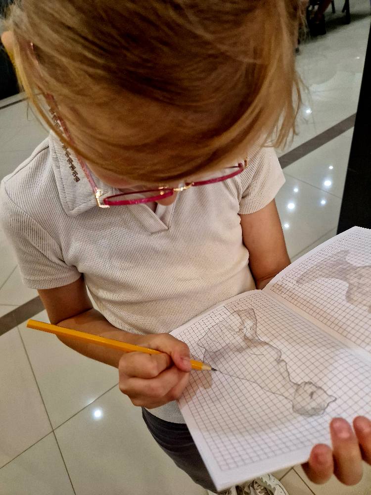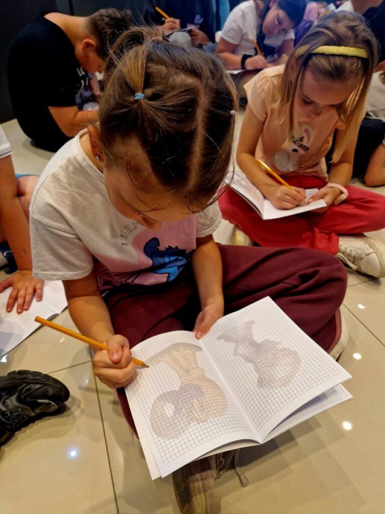 Podczas wizyty rozmawialiśmy o szkicownikach artystów, poznawaliśmy tajniki pracy rzeźbiarzy, a następnie… dzieci same chwyciły za ołówki, by spróbować swoich sił w rysunku. Z kartki na kartkę powstawały prawdziwe małe dzieła – jedne precyzyjne i realistyczne, inne pełne wyobraźni i kreatywnej swobody.