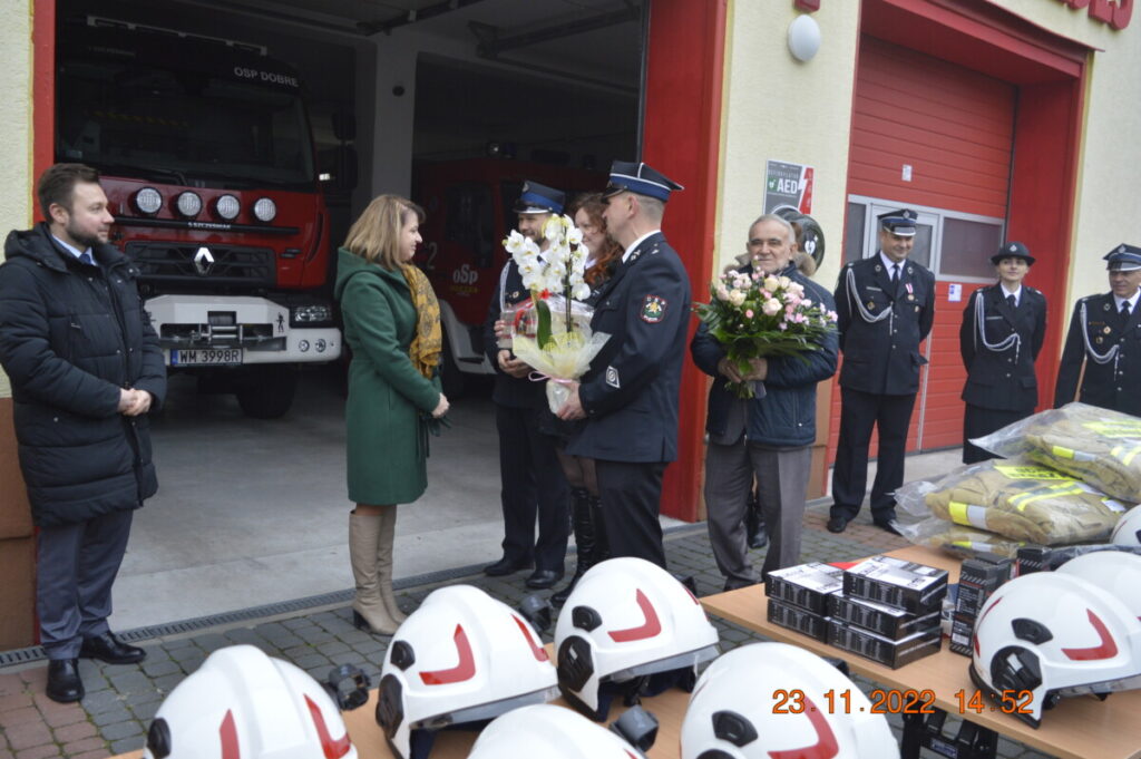 23 listopada przed budynkiem OSP Dobre dokonano oficjalnego przekazania sprzętu przez Janinę Ewę Orzełowską Marszałek Województwa Mazowieckiego. Z pomocy samorządu Mazowsza skorzystali także druhowie OSP Mlęcin i OSP Dobre, którzy otrzymali po 5 kompletów umundurowania bojowego.