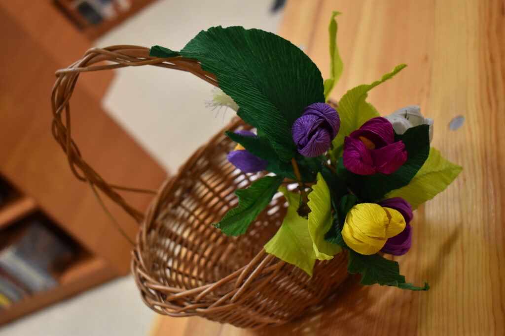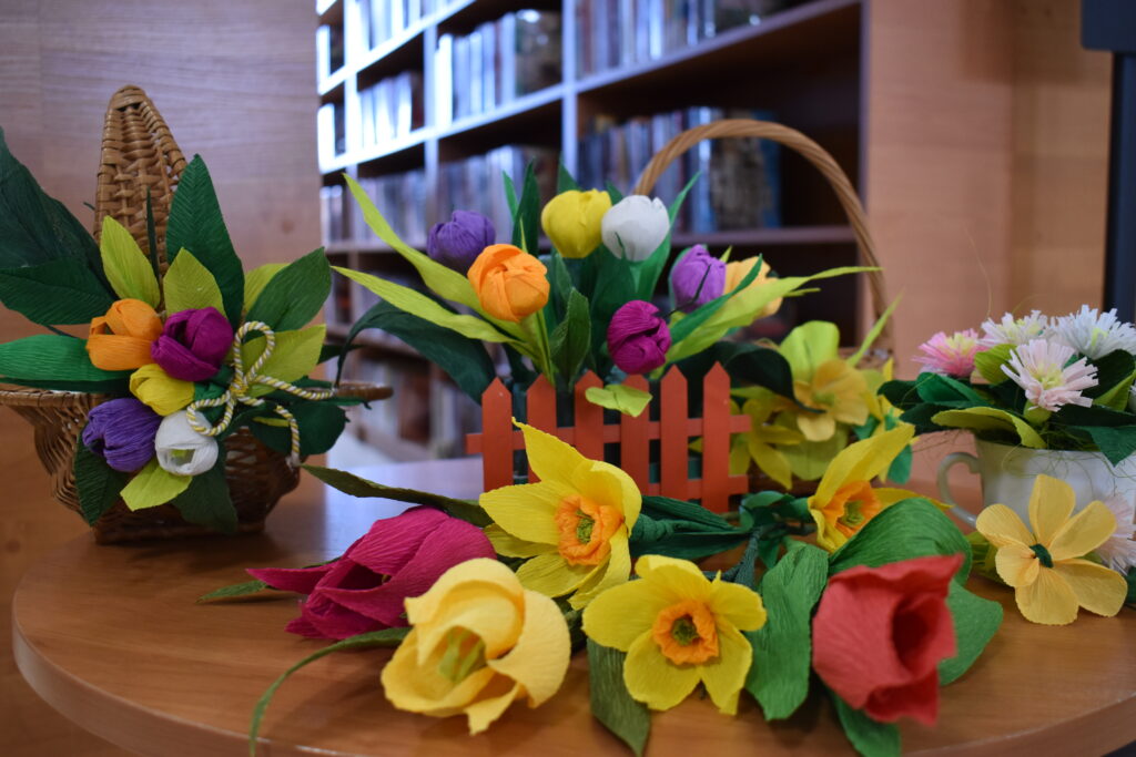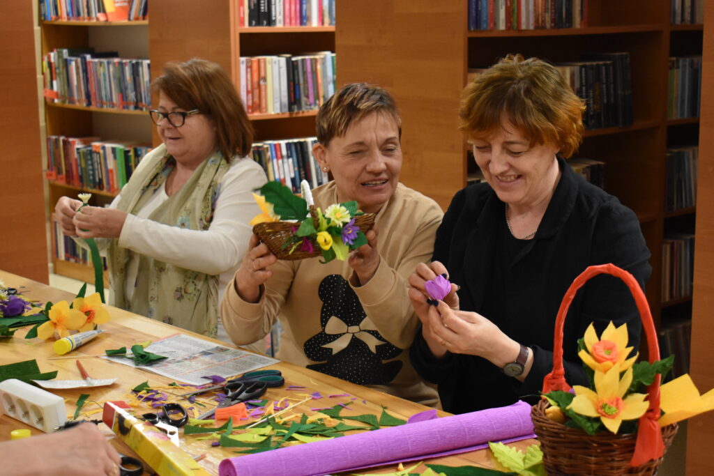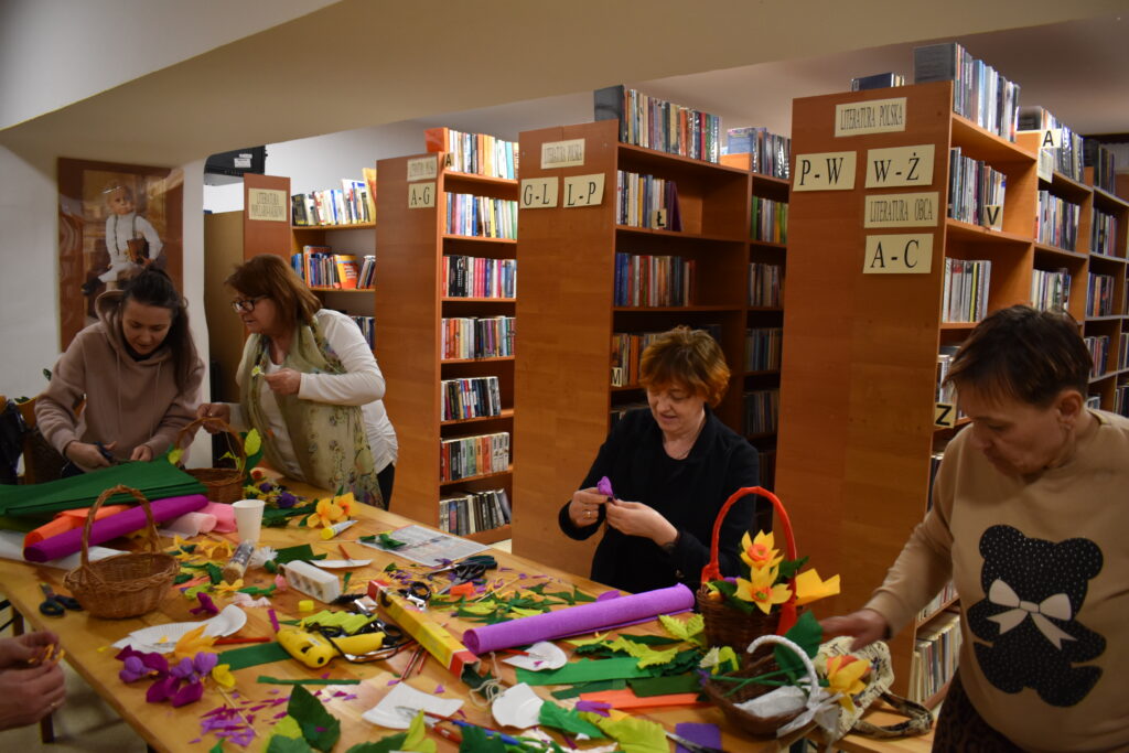 Dnia 24 marca w Gminnej Bibliotece Publicznej w Dobrem odbyły się warsztaty dla młodzieży i dorosłych pt.: „Wiosenne kwiaty z krepy”.