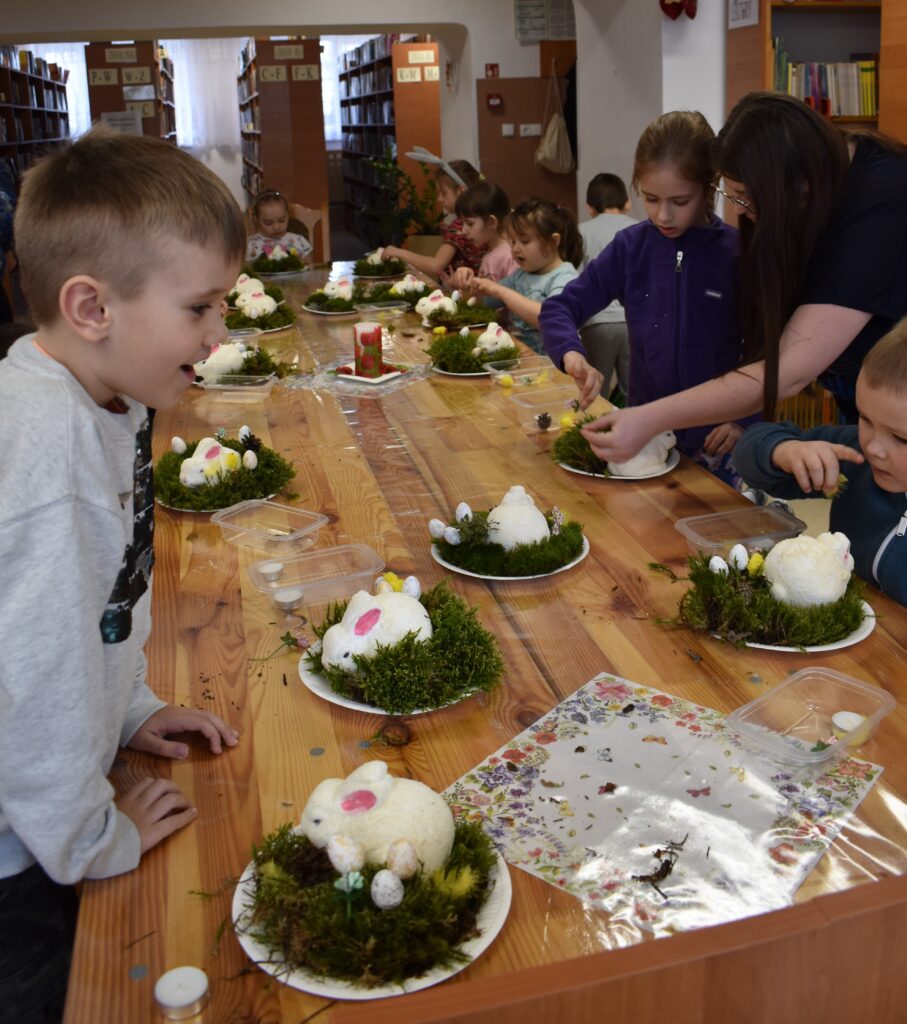W poniedziałek 11 kwietnia Gminny Ośrodek Kultury i Biblioteka zorganizowały świąteczne warsztaty dla dzieci w wieku 6-8 lat. W zajęciach wzięła udział grupa 15 uczestników. Dzieci wykonały piękny stroik świąteczny, który zabrały do domu.