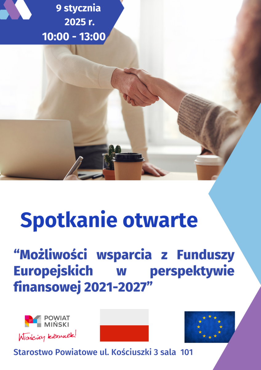 Starostwo Powiatowe w Mińsku Mazowiecki organizuje otwarte spotkanie informacyjne z Funduszy Europejskich pn. „Możliwości wsparcia z Funduszy Europejskich w perspektywie finansowej 2021-2027”