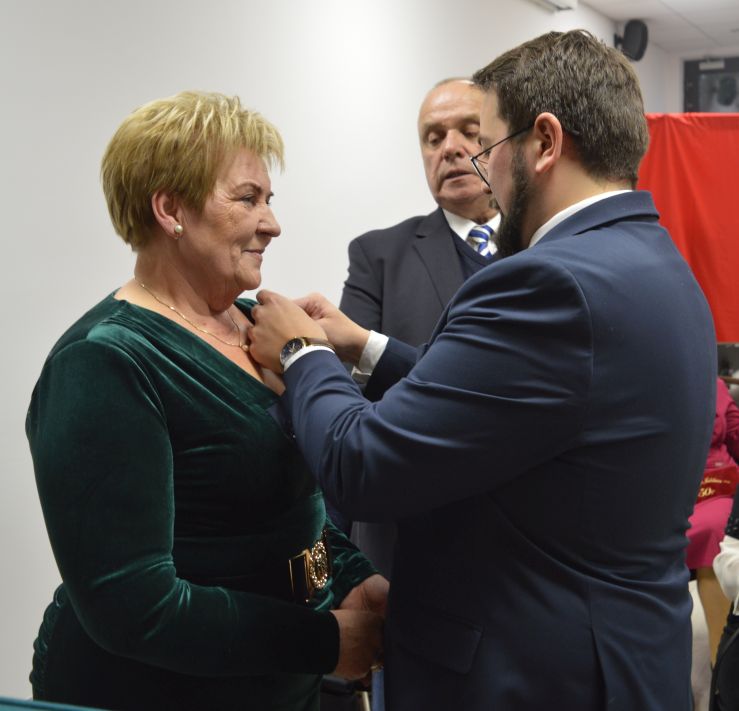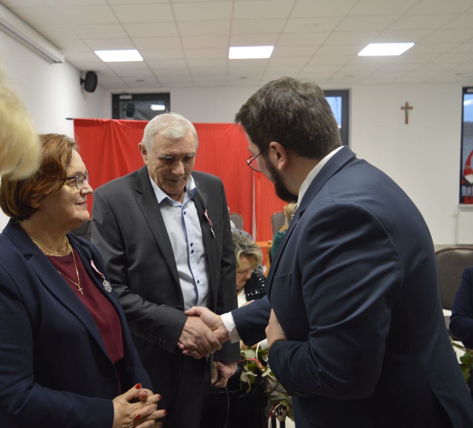 Dekoracji w imieniu Prezydenta Rzeczypospolitej Polskiej dokonał Burmistrz Miasta i Gminy Dobre Kamil Wichrowski w asyście Przewodniczącego Rady Miasta i Gminy Mariusza Miąskiewicza, Zastępcy Burmistrza Piotra Chmielewskiego oraz Kierownika USC Danuty Rawskiej.