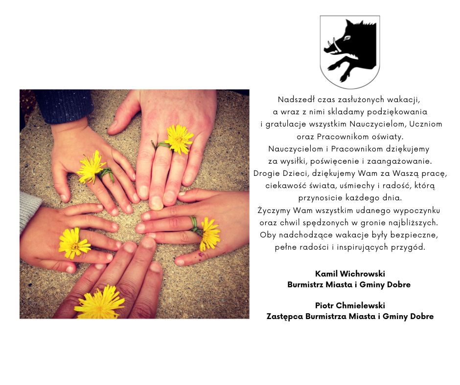 Życzymy udanych wakacji! Strona główna / Aktualności / 🔊 Posłuchaj treści aktualności Szanowni Nauczyciele, Dzieci, Pracownicy dziękujemy i gratulujemy!